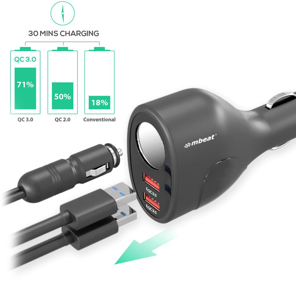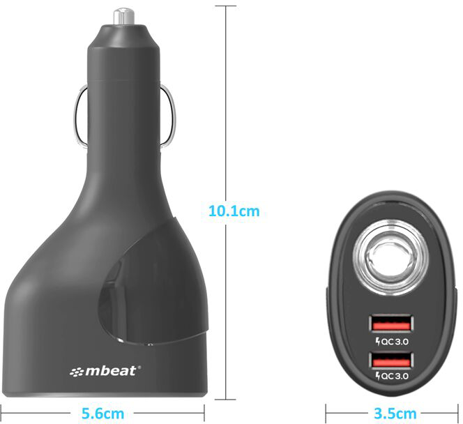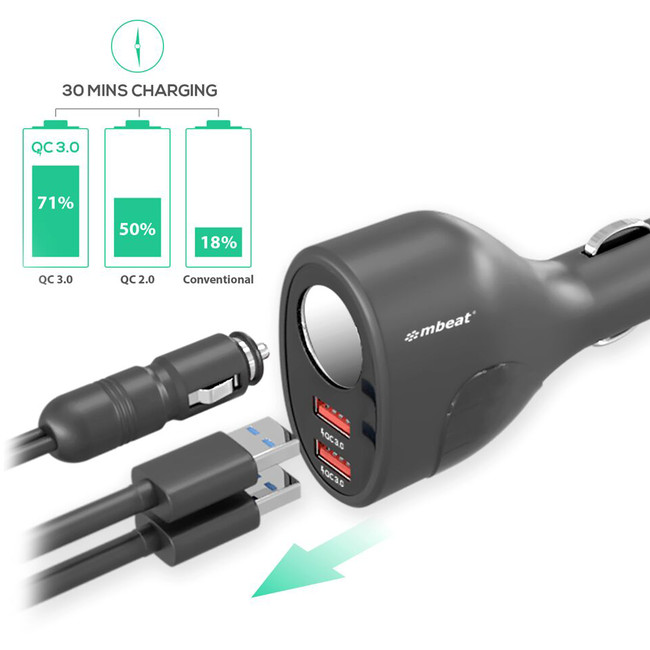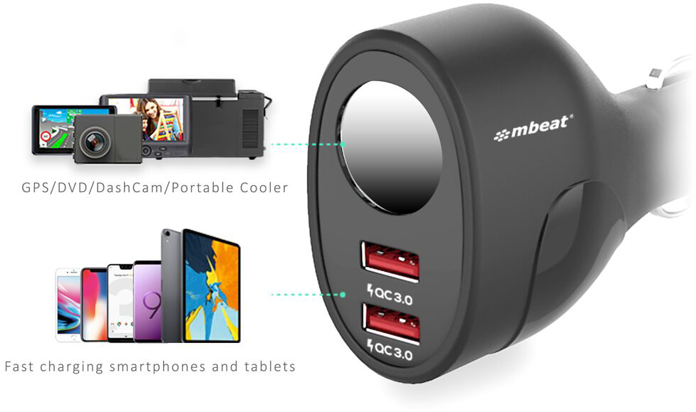 mbeat Gorilla Power Dual Port QC3.0 Car Charger and Cigarette Lighter Extender
