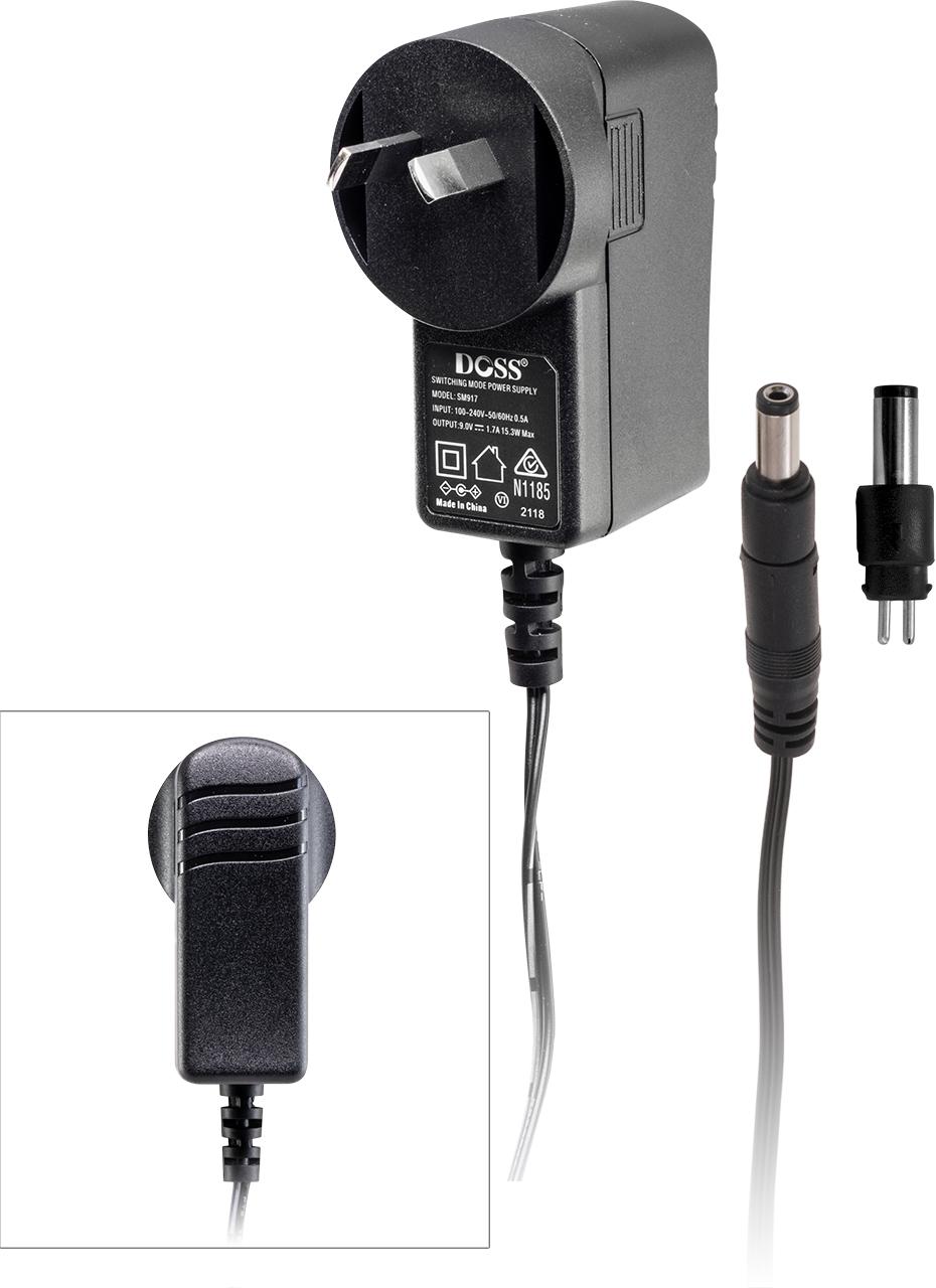 • Interchangeable tips - includes 2.1mm and 2.5mm DC plugs