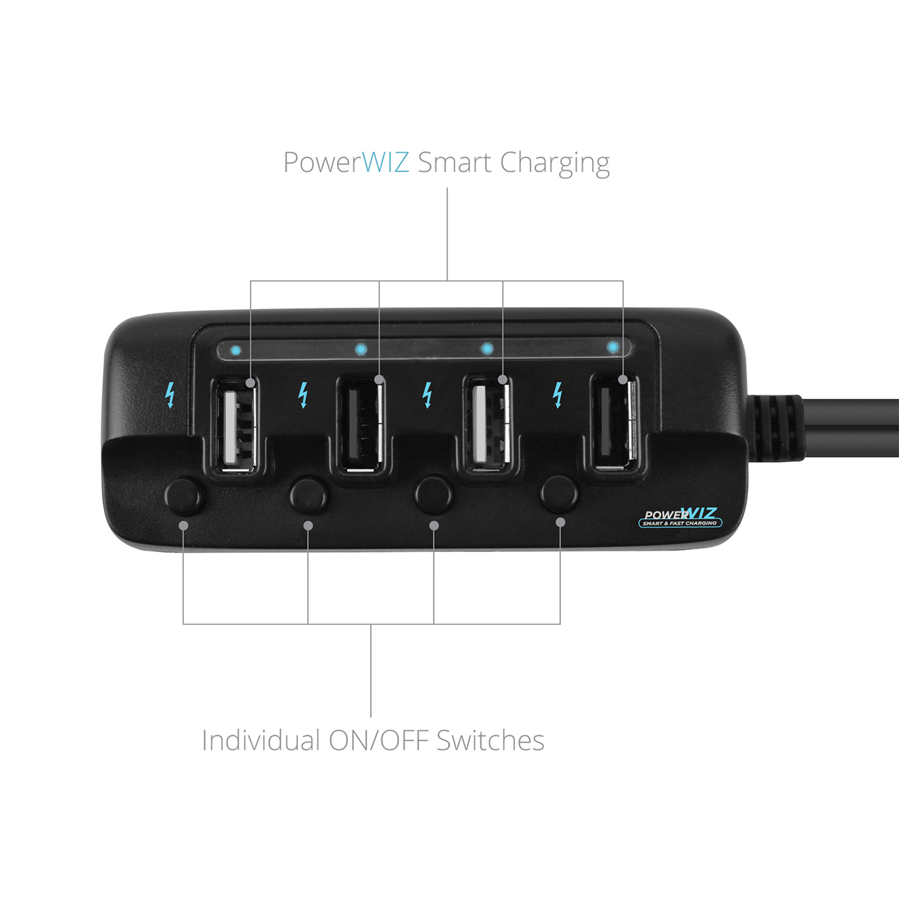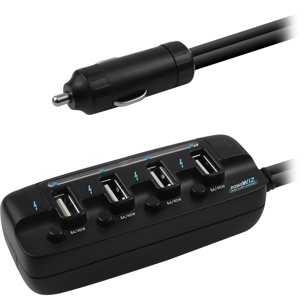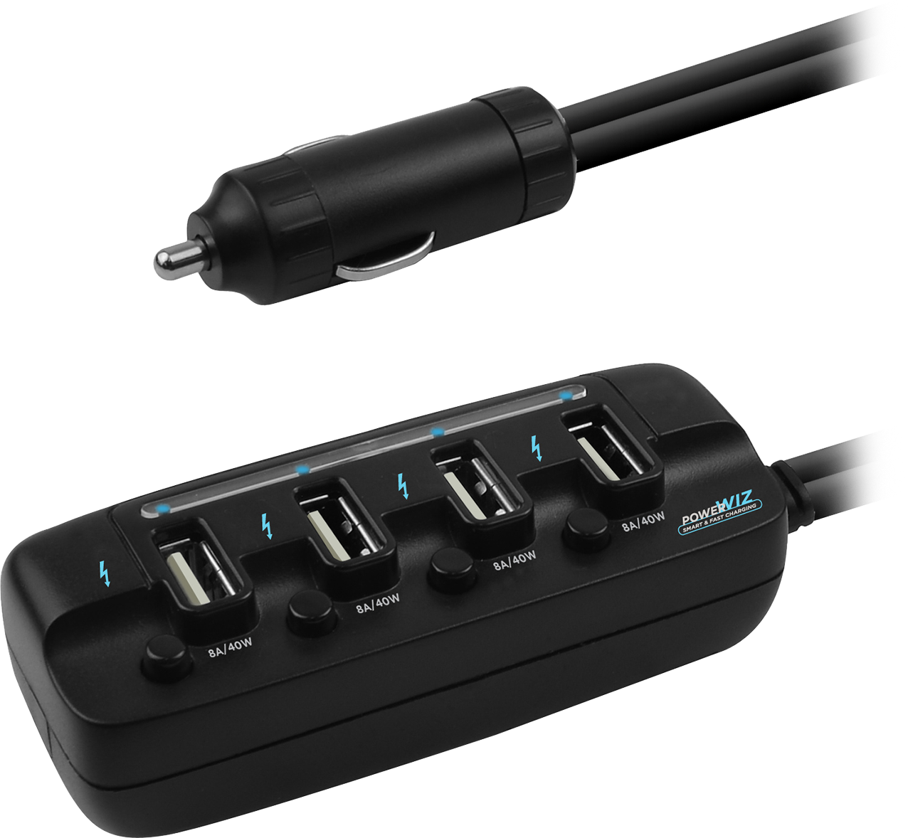 4-Port 40W Rapid Car Charger with ON/OFF switches