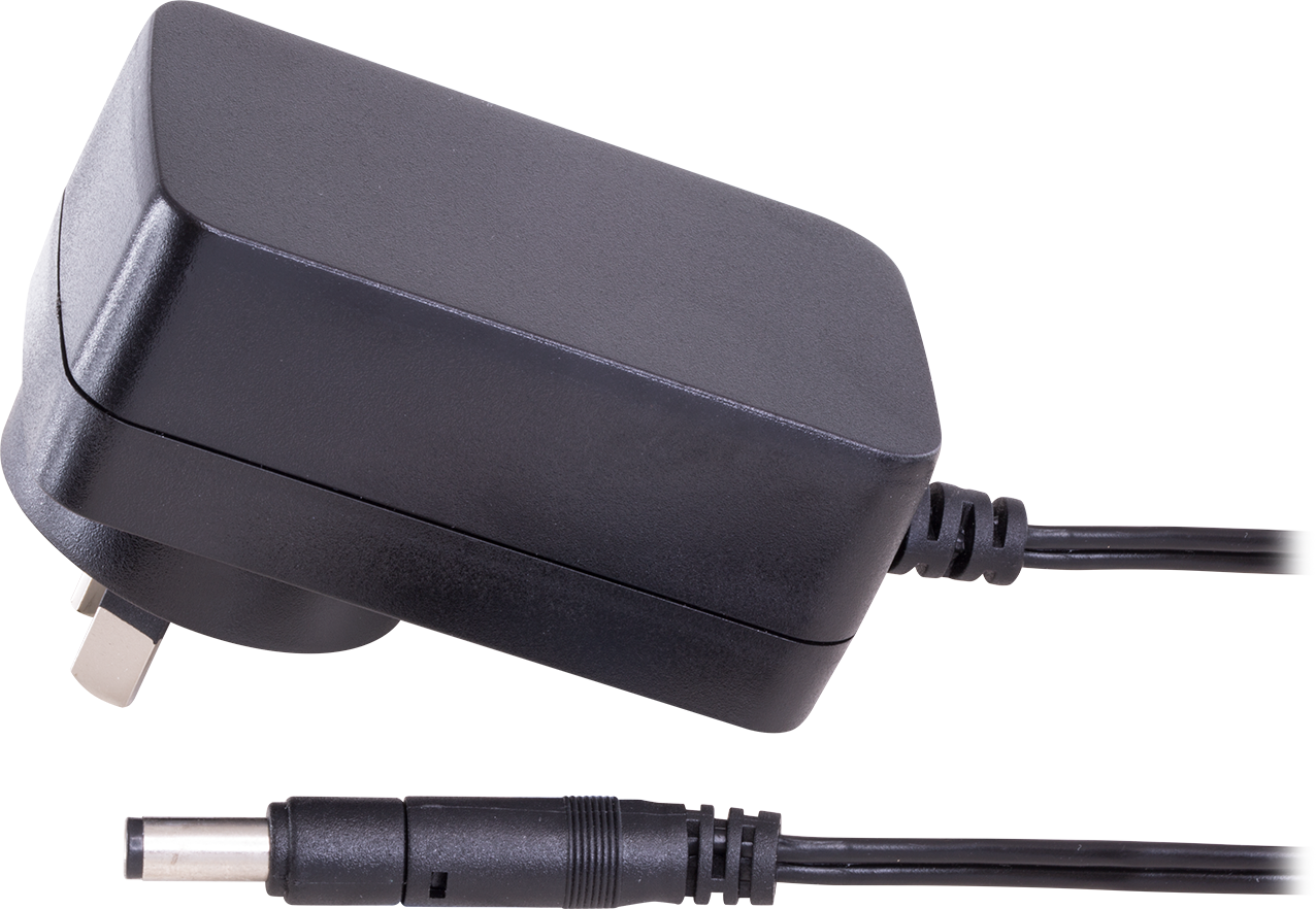 Input: 1~24 V AC 5/6Hz .45 A Max, Output: 12 V DC Interchangable DC plug Includes 2.1mm and 2.5mm DC plugs Current: 1.5 Amp Fully Approved