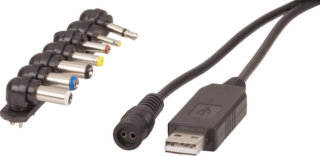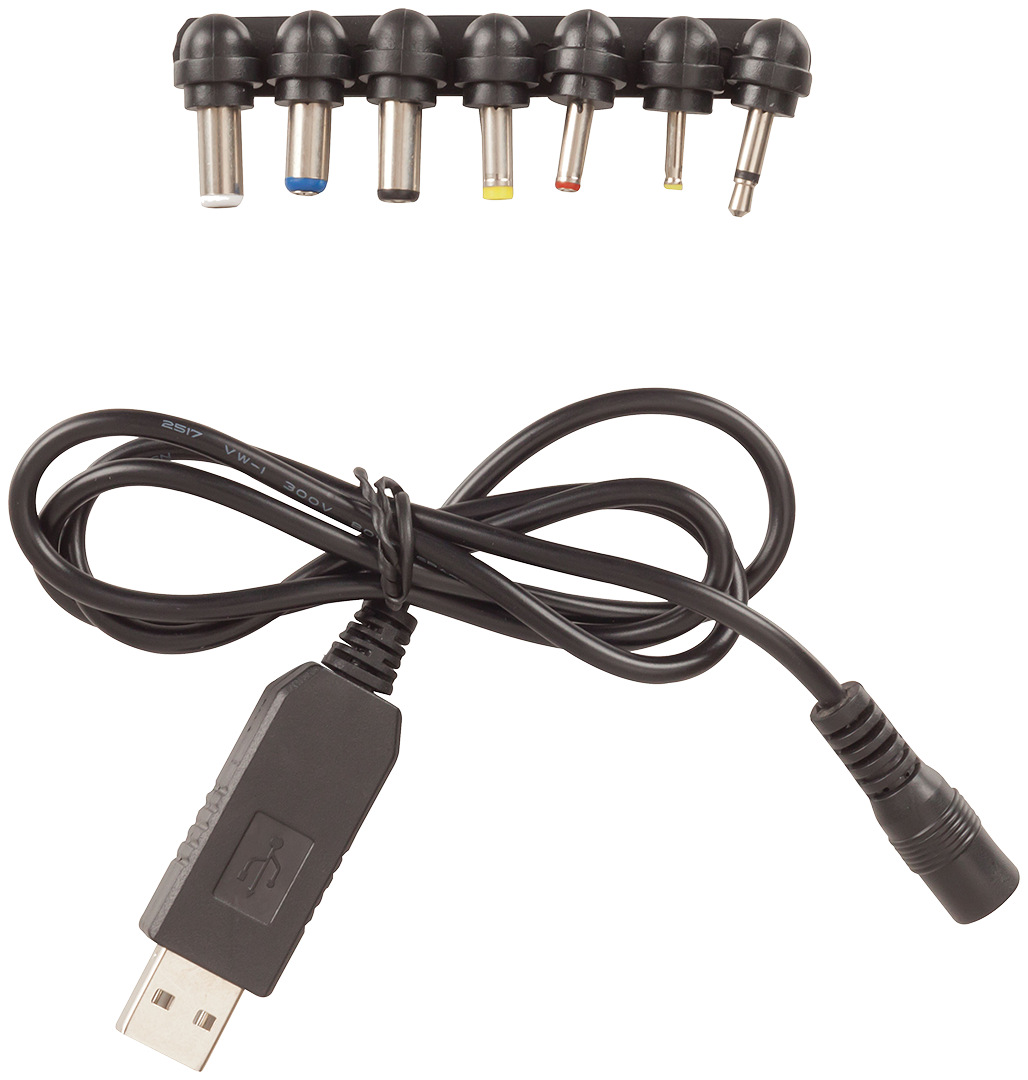 Absolute genius! This adaptor provides you with 12V output from a common USB socket (usually 5V output). Useful for powering all sorts of 12V devices direct from a computeror other USB charging source. 12V @ 1A rated output. Includes 7 standard DC tips to suit your device. Note - yourUSB port must be equipped for high current charging (2.1A orgreater). Some USB ports are 500mA rated. The device will work perfectly, but will not be able to provide the full 1A current at 12V.