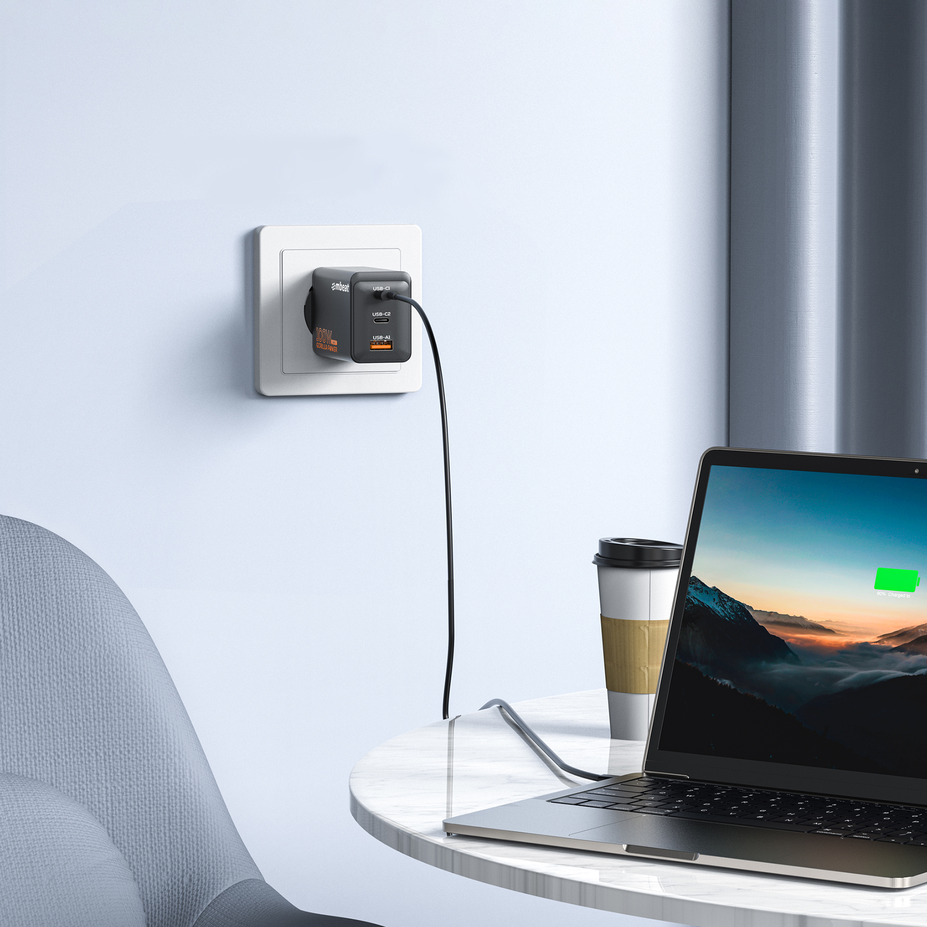 Delivers a total of 100W power via two USB-C ports and one USB-A port. Capable of fast charging three devices simultaneously, ideal for phones, tablets, and laptops.