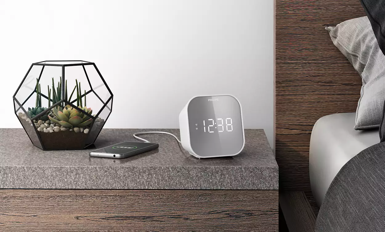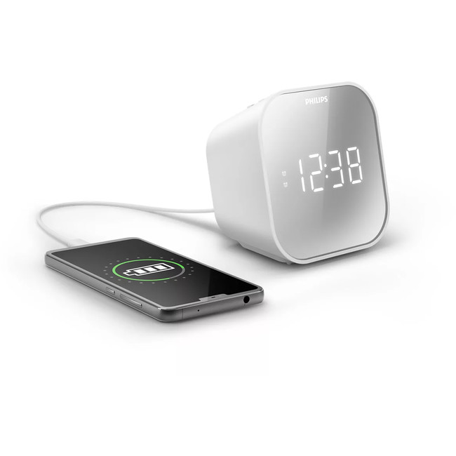 Get up ready to rock. This FM clock radio will charge your mobile device while you sleep ? and wakes you with a gently rising alarm tone or radio station. There’s also a Sleep Timer, so you can fall asleep listening to the radio too.