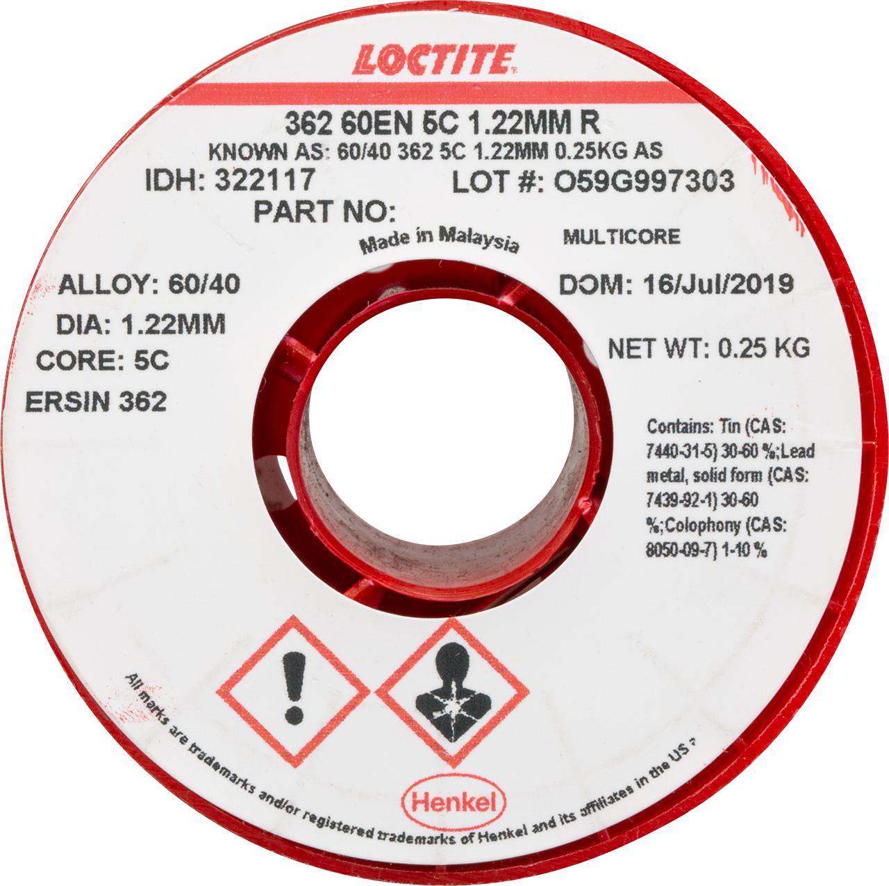 Ersin Multicore is solder in the form of a continuous wire with 5 cores of extra-active, non-corrosive Ersin flux running throughout its length. This increases its fluxing action. Ersin flux not only removes surface oxides, but prevents them reforming during soldering. The thinner diameters of 0.71mm and 0.355mm are especially useful in the soldering of miniature components and the interconnection of integrated circuits.
