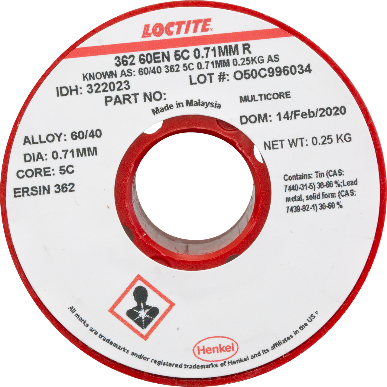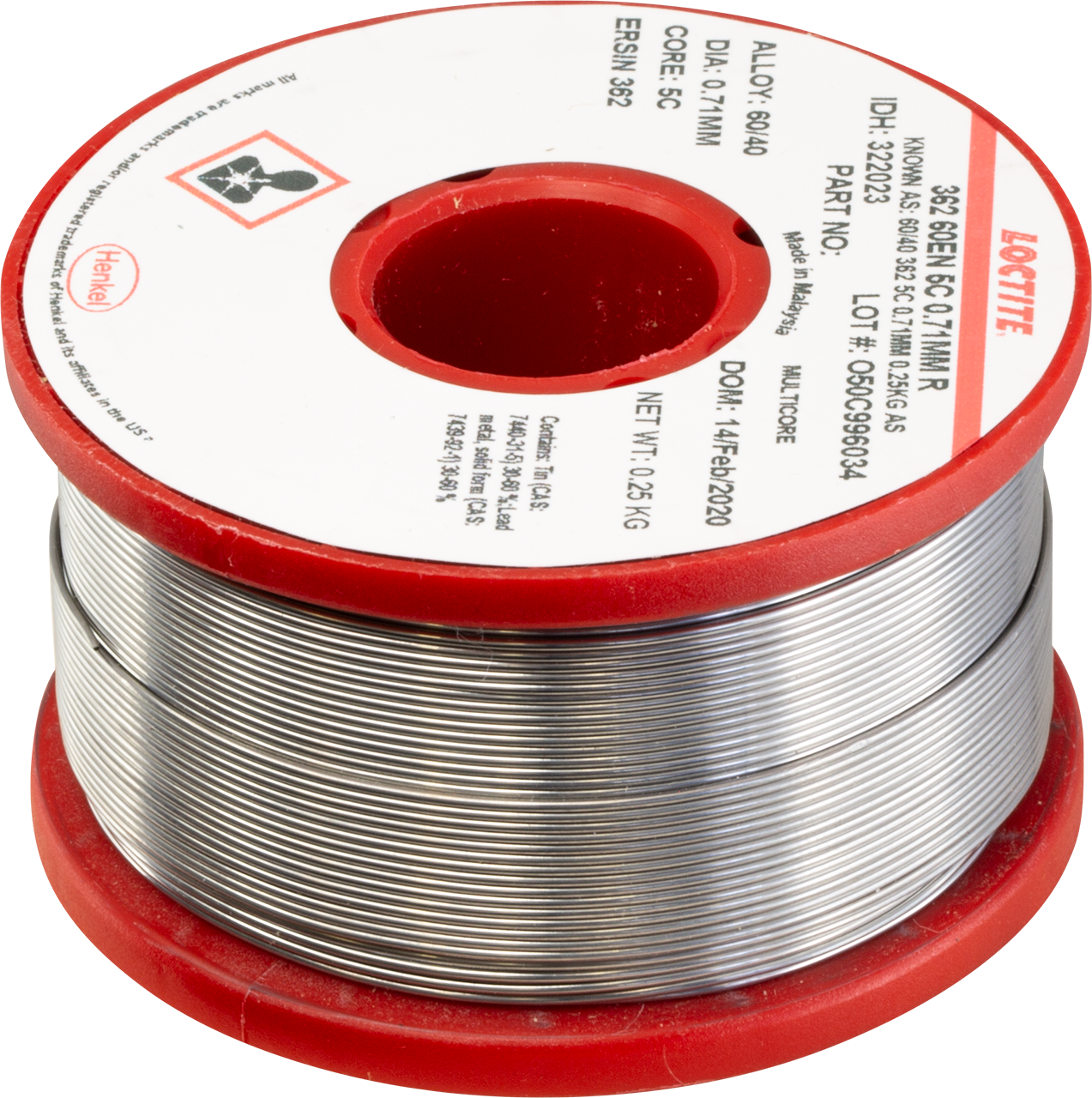 Ersin Multicore is solder in the form of a continuous wire with 5 cores of extra-active, non-corrosive Ersin flux running throughout its length. This increases its fluxing action. Ersin flux not only removes surface oxides, but prevents them reforming during soldering. The thinner diameters of 0.71mm and 0.355mm are especially useful in the soldering of miniature components and the interconnection of integrated circuits.