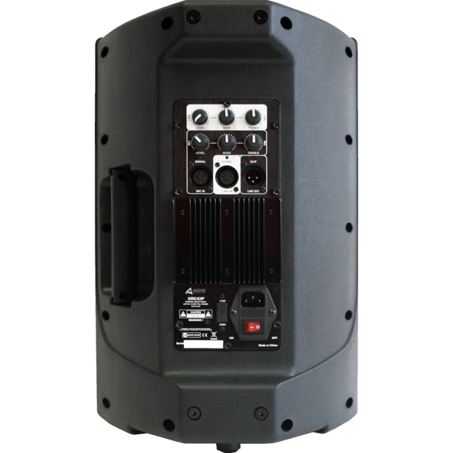 Building on the reliability and sonic quality of the very popular XR speaker series, the XRS10P is a bi-amped active 2 way injection moulded speaker system with a 10″ woofer receiving 100W and 1.5″ compression driver receiving 50W. The XRS10P has more features and new aesthetic to suit live sound reinforcement and permanent installation. Featuring separate microphone and line level inputs with individual EQ and balanced line level output the XRS10P amp module is incredibly versatile. From front-of-house to fold back, from the dance floor to background fill, the XRS10P is designed with flexibility and performance in mind. The XRS10P is supplied with foldback kit.