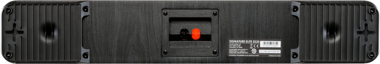 The ES35 slim center channel tucks in right below your TV to provide big-speaker sound without blocking your viewing area or IR Remote. The ES35’s flexible, wallmountable design enables it to also be used as left, right or surround channels for amazing home theater sound that doesn’t require floor or shelf space.