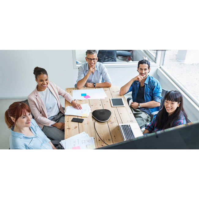 - SoundCap™ technology captures nearby conversations while eliminating background noise for meetings being held in loud, open space environments