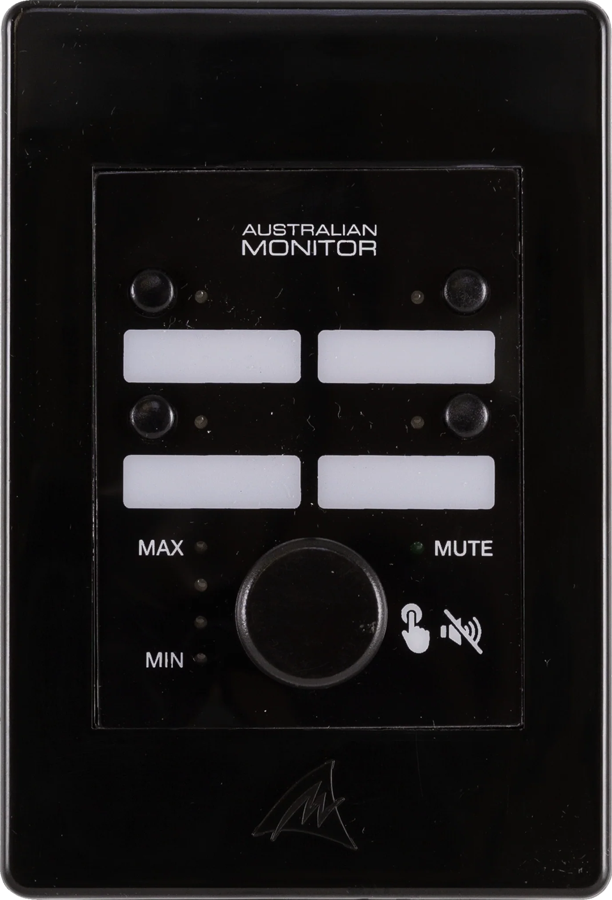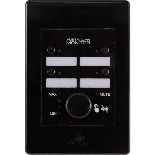 The WP4R wall panel is a 4 button controller with volume control knob for use with the ZONEMIX system.
