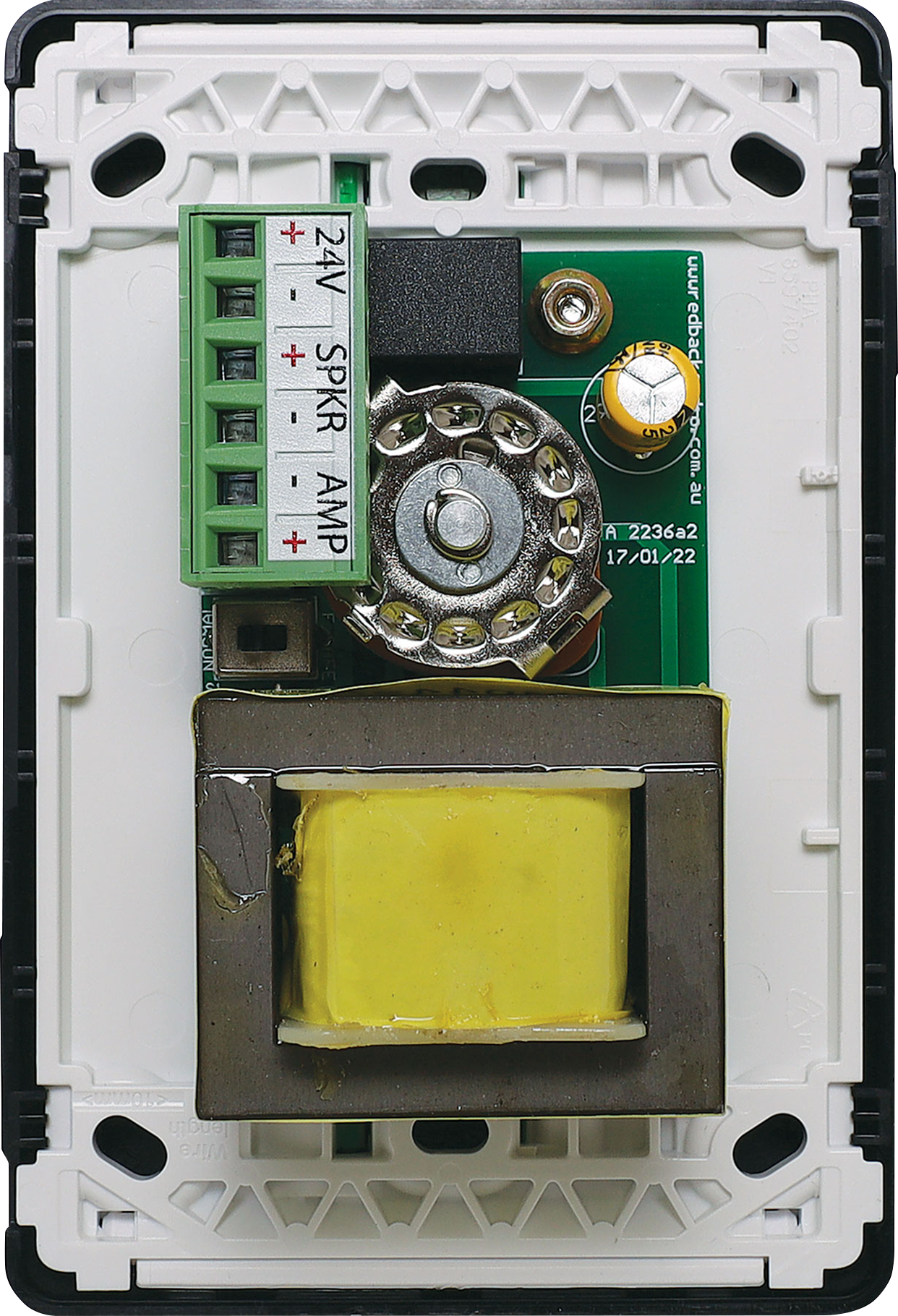This 40W volume control is designed for 100V line speaker systems.The volume control is fitted to a black Clipsal Pro Series wall plate which has been specifically designed for commercial building installations.