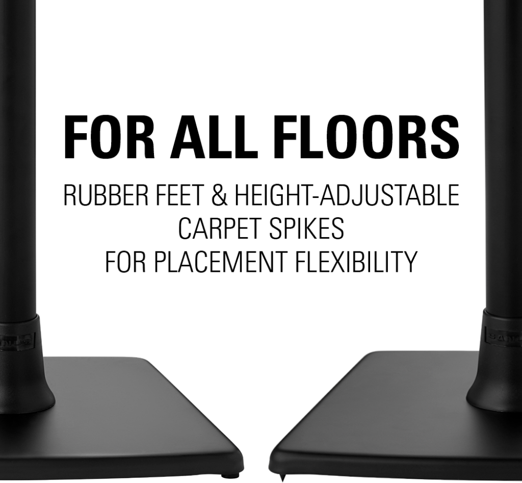 Stands are sold as single pieces or in pairs to accommodate any sort of system arrangement, be it home theater, surround sound, or ambient listening.