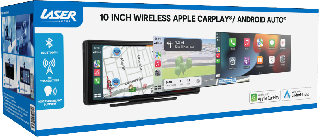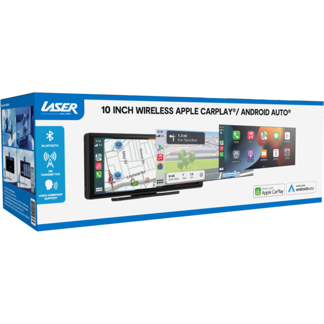 The Laser 10.26" Portable Apple CarPlay/Android Auto Touchscreen brings the convenience, safety, and functionality of Apple CarPlay and Android Auto to any vehicle.