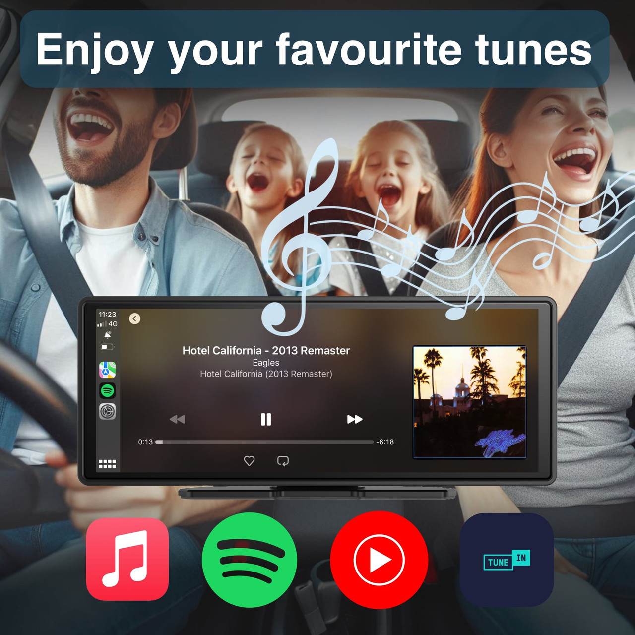 Music your way- Stream, cast and play your favourite songs, playlists, or podcasts. Whether you use Spotify, Apple Music, TuneIn, Amazon Music, or any other app on your phone, it's available on the CarPlay/Android Auto screen. For example, say, "Hey Siri, play some Taylor Swift."