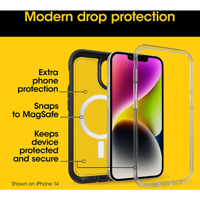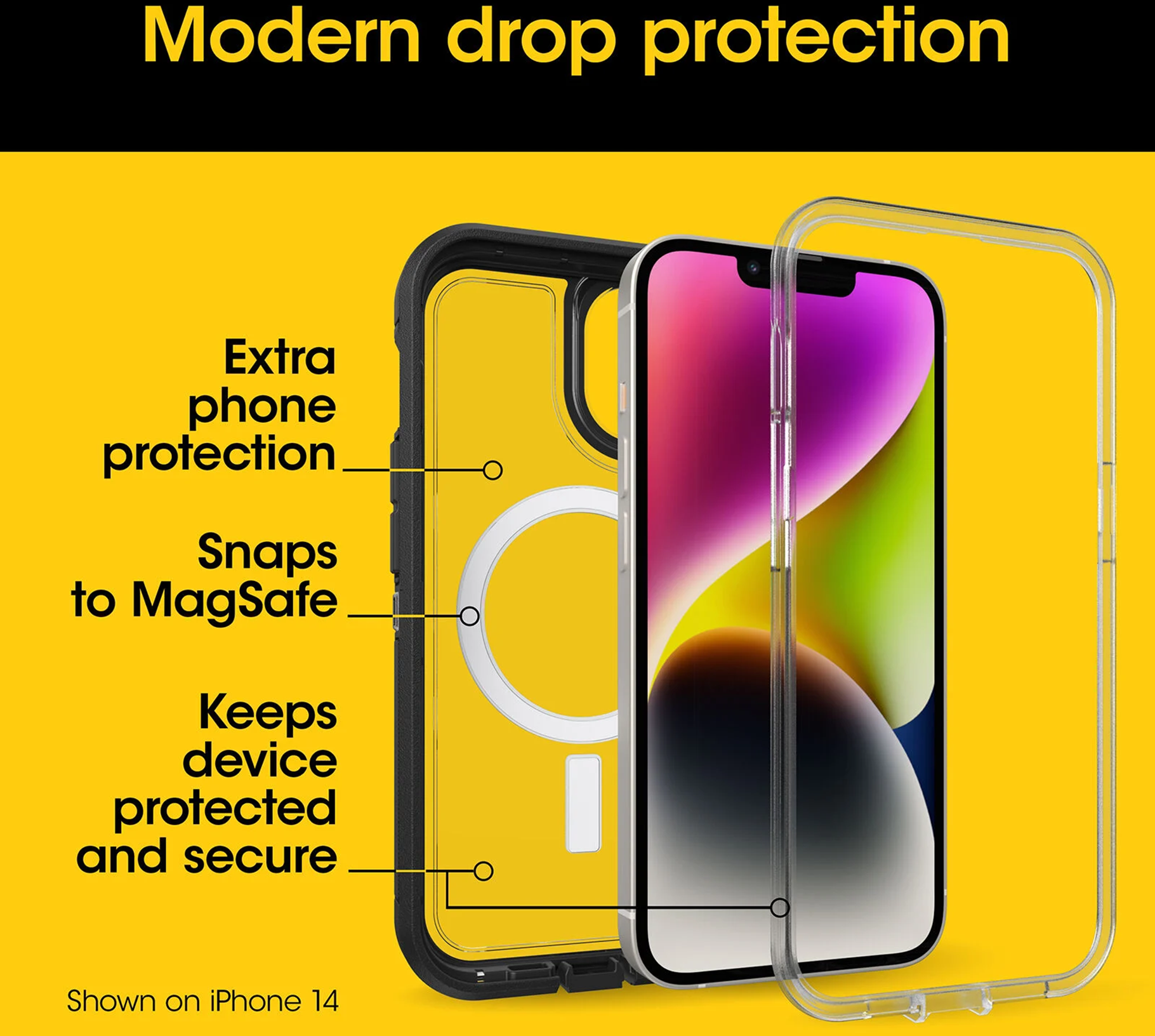 Looking for legendary protection? You’ve found it with the rugged MagSafe iPhone 15 case, Defender Series XT. The premium rugged design displays clean lines with a comfortable grip that guards your iPhone against serious drops, dirt, scrapes and bumps. And, built-in magnets snap to MagSafe chargers and accessories.