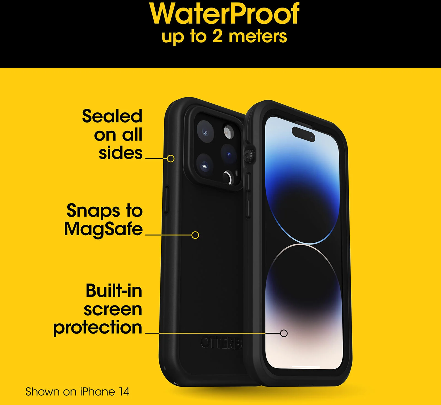 OtterBox Fre MagSafe Apple iPhone 15 (6.1") Case Black - (77-93438), DROP 5X Military Standard,2M WaterProof,Built-In Screen Protector