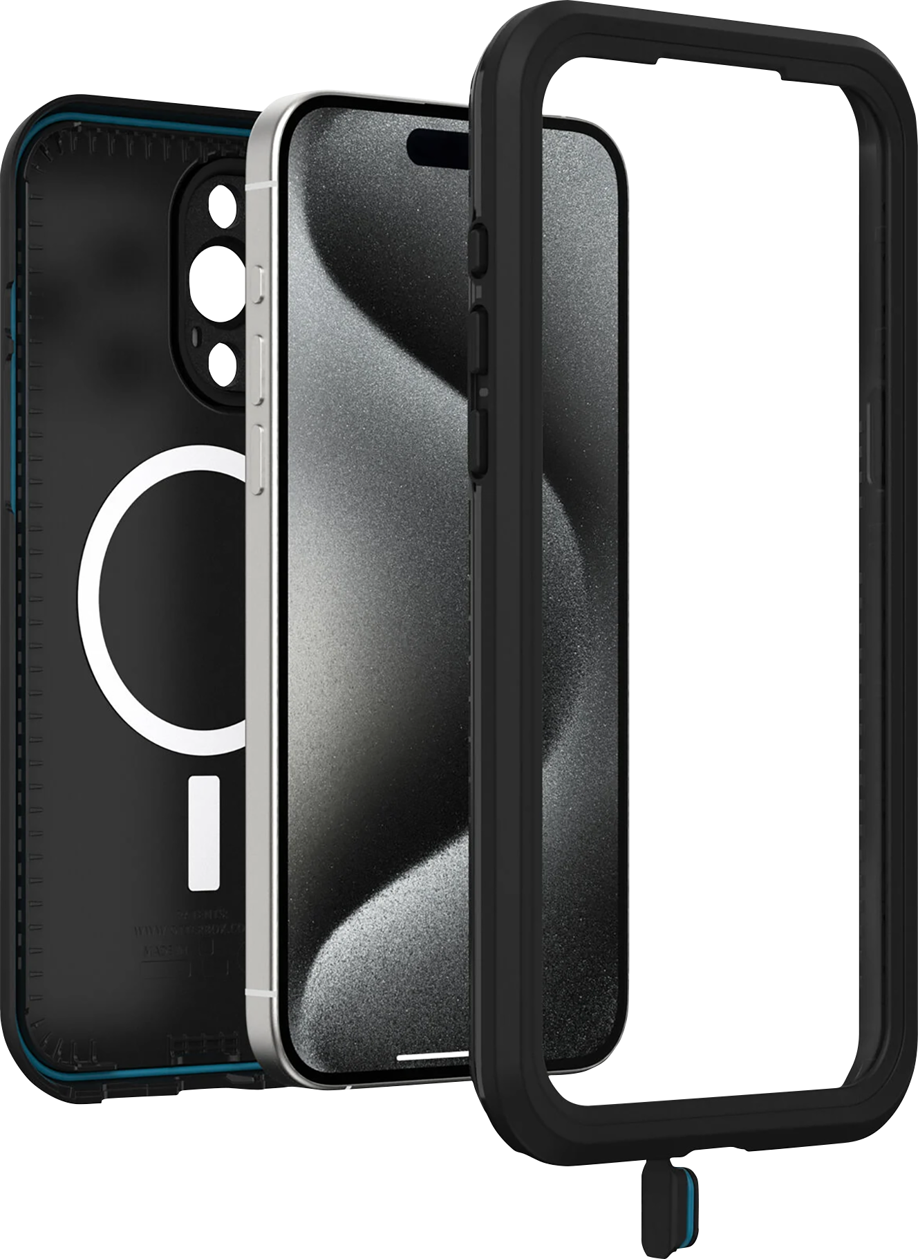 Weekday spreadsheet wizard. Weekend trail runner. Everyday environmentalist. Designed and engineered by LifeProof to keep pace with your productivity and your pursuits, OtterBox FRE Series waterproof phone cover with MagSafe also helps lessen your impact on the planet. OtterBox FRE covers your phone on all sides, keeps up with your every activity and survives hard falls along the way. Plus, it snaps securely to MagSafe accessories, letting you use OtterBox FRE Series with MagSafe in new ways and places.