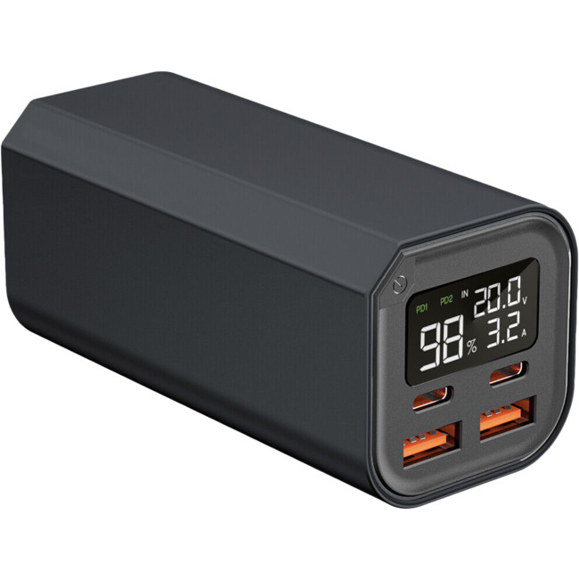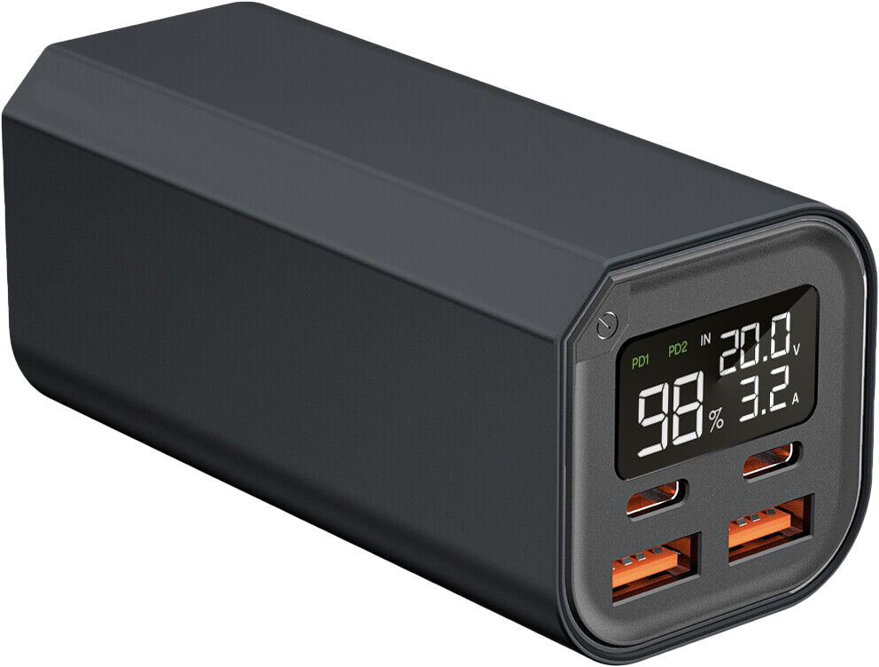 Equipped with four ports, you can charge multiple devices simultaneously. Experience fast charging with 100W for quick power-ups, catering to even the most powerful laptops.