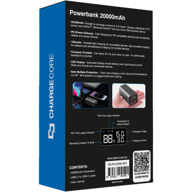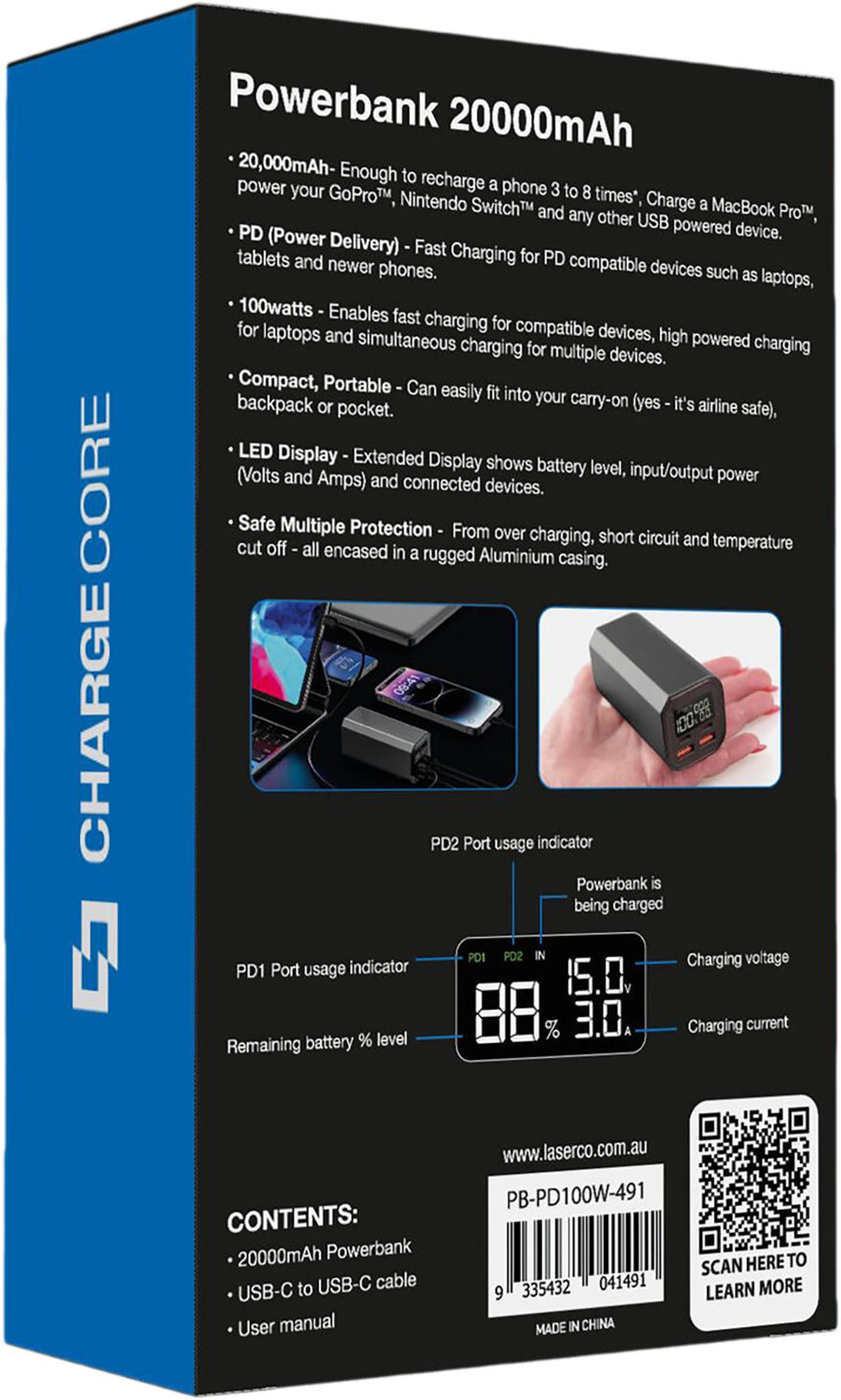 With a rapid recharge time of approximately 1.5 hours, this powerbank ensures you always have reliable power at your fingertips.