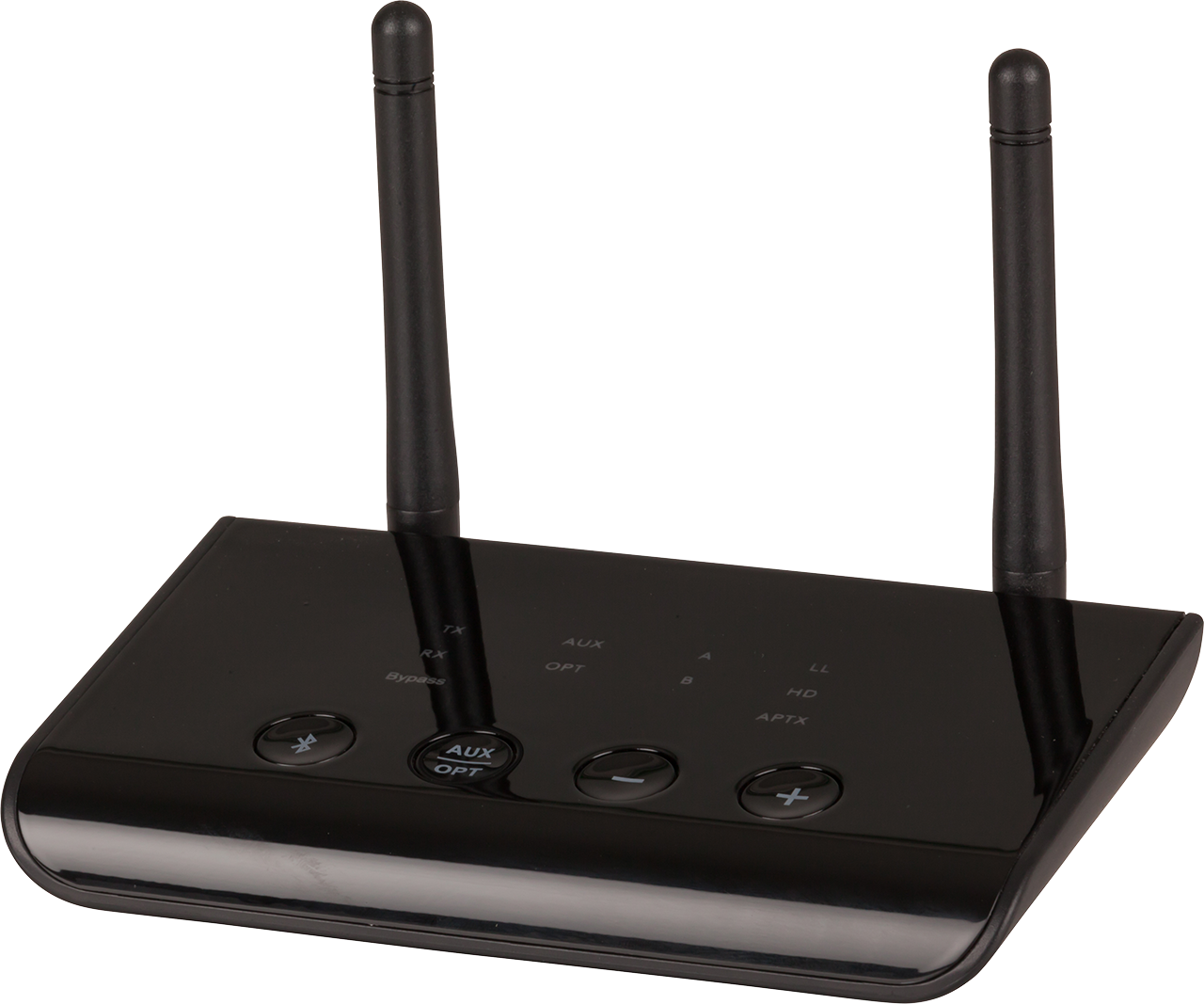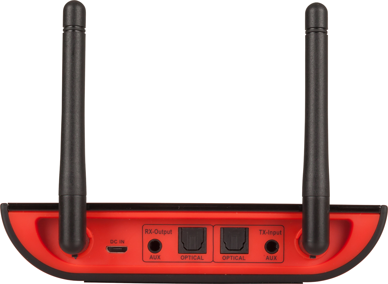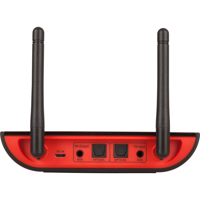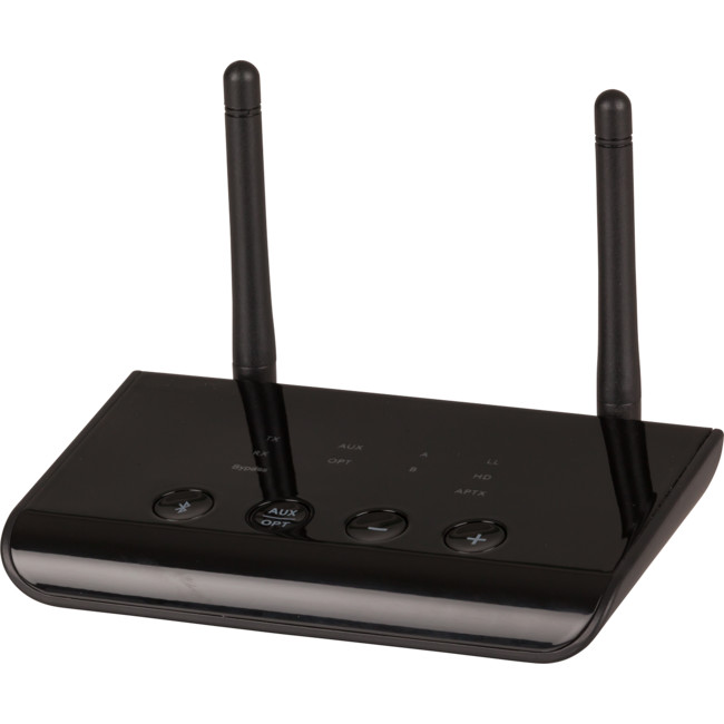 Send audio signals up to 50m away in the home or officewithout the need for running cables. This all-in-one long range audio transmitter and receiver uses dual Bluetooth® and Qualcomm aptX technology to stream audio from a Smartphone, Tablet, or a media player to two Bluetooth® headphones or Bluetooth speakers simultaneously. Each unit can be toggled between send, receive, or bypass, and feature AUX and TOSLINK inputs for analogue or digital devices. A USB mains power adaptor with charging lead is supplied, along with a 3.5mm stereo audio cable, TOSLINK cable, and 3.5mm socket to RCA adaptor. A slide switch on the side determines the Tx, Rx, or bypass mode, and four controls on top enable Bluetooth®, AUX, or optical inputs, and other settings. Features: - Dual Bluetooth Streaming - Up to 50m Range - TOSLINK Optical Bypass - Qualcomm aptX Low Latency Support - A2DP, AVRCP Support Profile -Suported CODEC: aptX-HD/aptX-low latency/apt-X/SBC/AAC