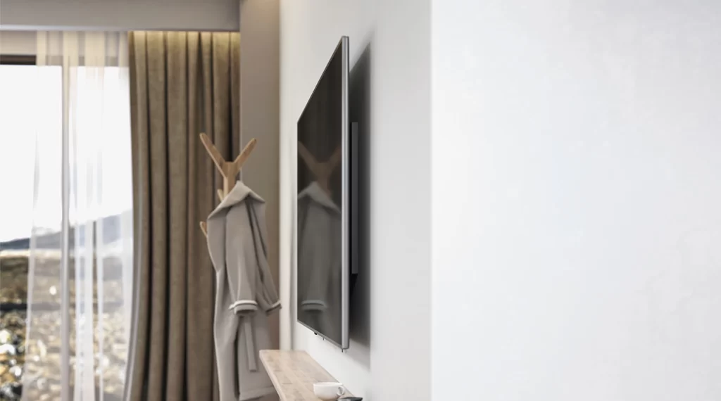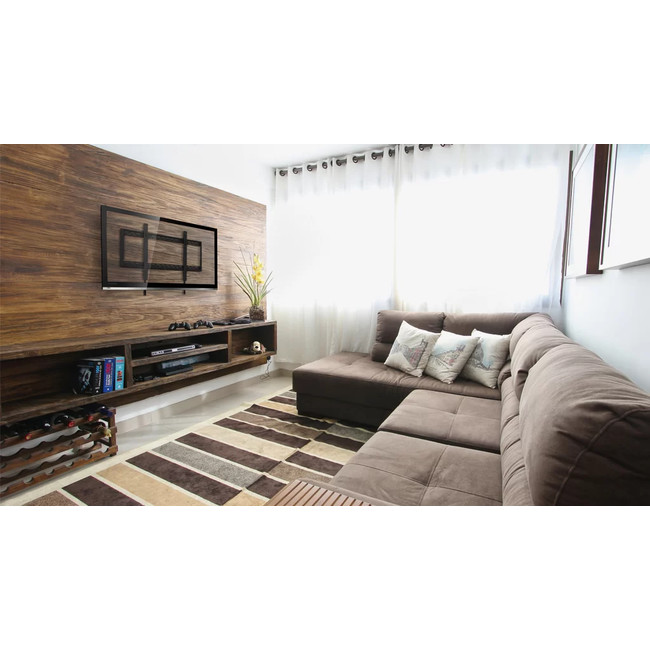 Easily attaches to most 60” to 100” TV screens weighing up to 110kgs using the supplied hardware kit and without the need for special tools. The slim design allows the screen to sit just 32mm from the wall while providing plenty of room to accommodate HDMI, audio, power and other cables that attach to the TV.