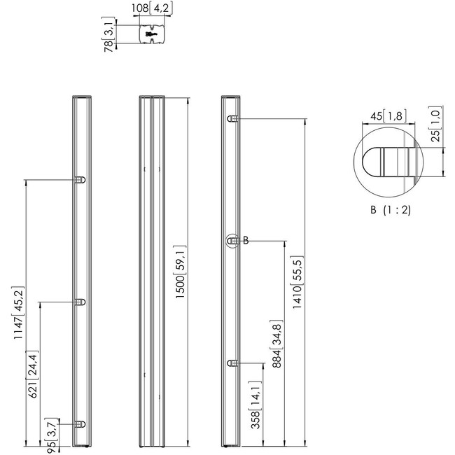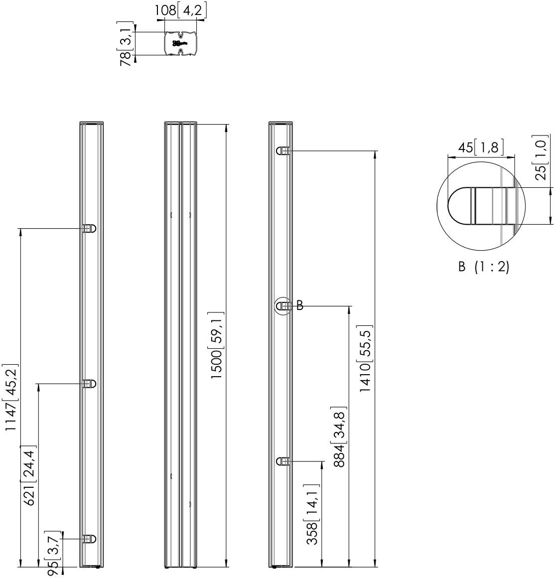 The poles are the connection between the floor base and display interface and are available in 3 different lenghts, 150cm, 180cm and 200 cm.