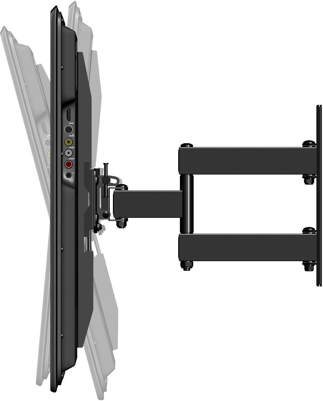 Full-motion mount extends, tilts and swivels for viewing anywhere ?in a room