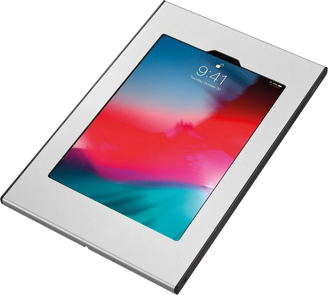 The Secure TabLock iPad enclosure can be mounted directly to the wall, or via de VESA 100x100 mm mounting holes to any Vogel's VESA compatible mounts.