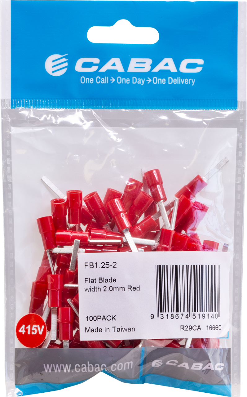 FB1.25-2-100 FLAT BLADE CONNECTOR RED 100PK