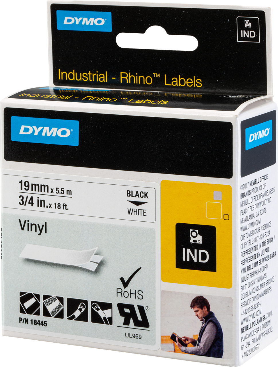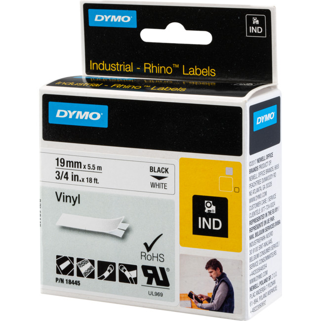 Vinyl Tape 3/4 in (19 mm), Black Font, White Label