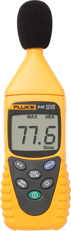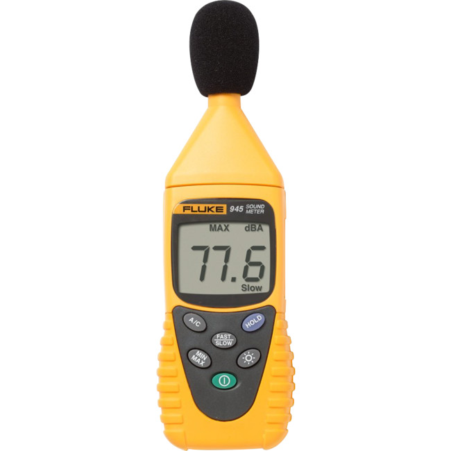 The Fluke 945 Sound Level Meter has been designed to meet the measurement requirements of safety Engineers, Health, Industrial safety offices and quality control in a wide variety of industrial environments. It offers two types of measurements: A weighting and C weighting. The A weighting is for general noise sound level and the C weighting is for measuring sound level of acoustic material control in various environments. The Fluke 945 conforms to the IEC651 Type 2, ANSI S1.4 Type 2, and JISC1502 requirements for Sound Level Meters.