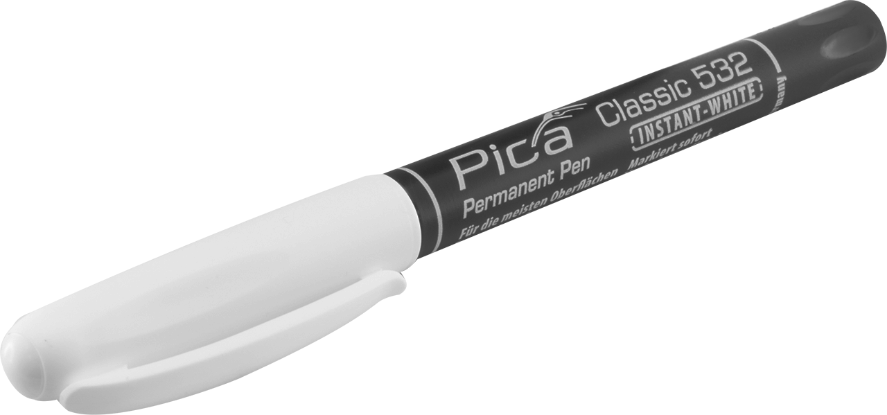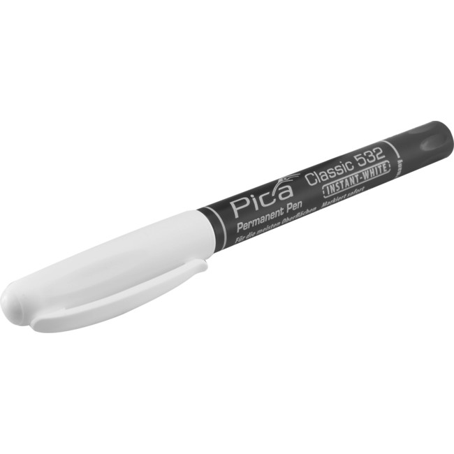 Pica Classic 532 Permant Pen - White, marks immediately without shaking or pumping