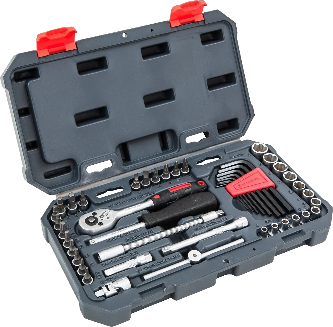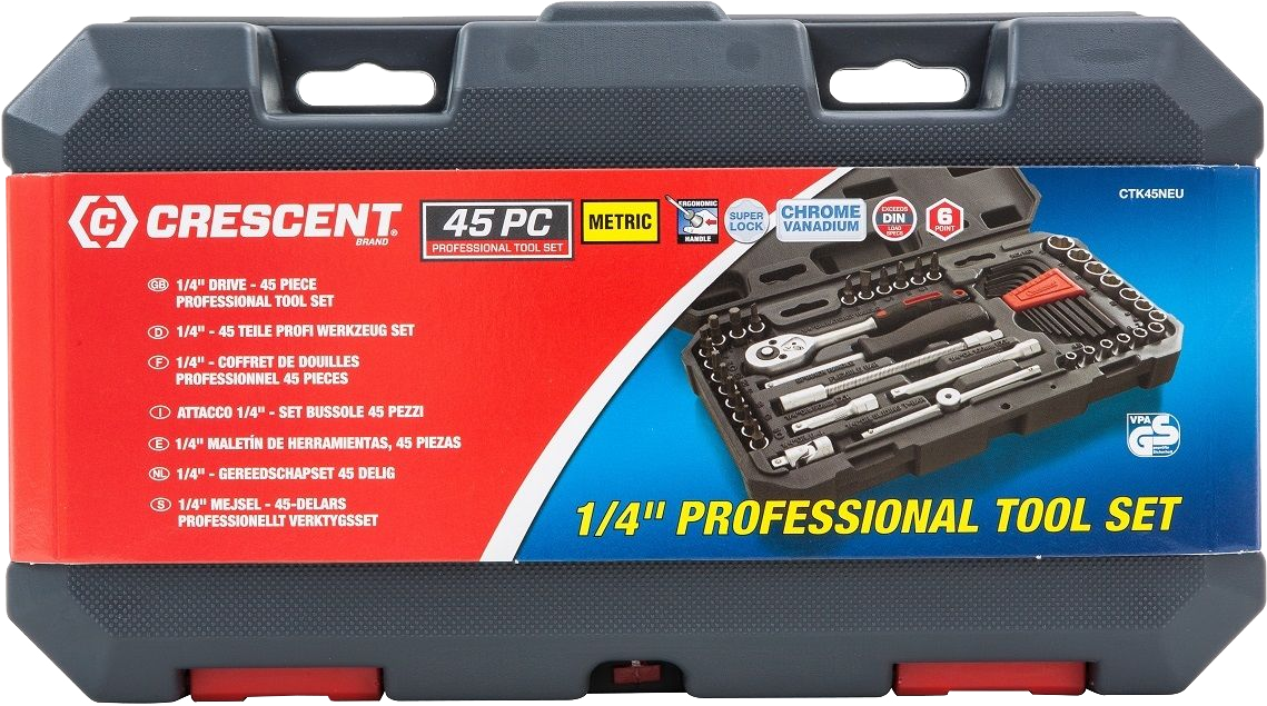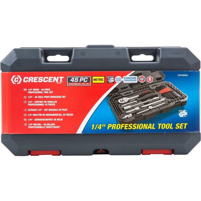 CTK45EU Mechanics Toolkit 1/4In 45 Pce The set includes 45 pieces in high-quality chrome-vanadiumand superlock (except bits and hex keys).