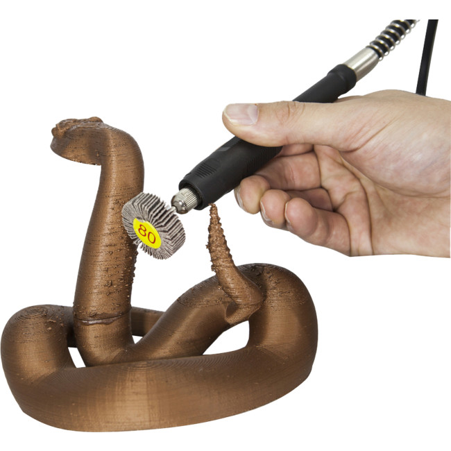 The kit consists of a powerful mains powered 32,000 RPM rotary tool that you can use with numerous attachments in the usual way, plus a 1 metre long flexible shaft. The flexible shaft attaches in seconds to give extra versatility