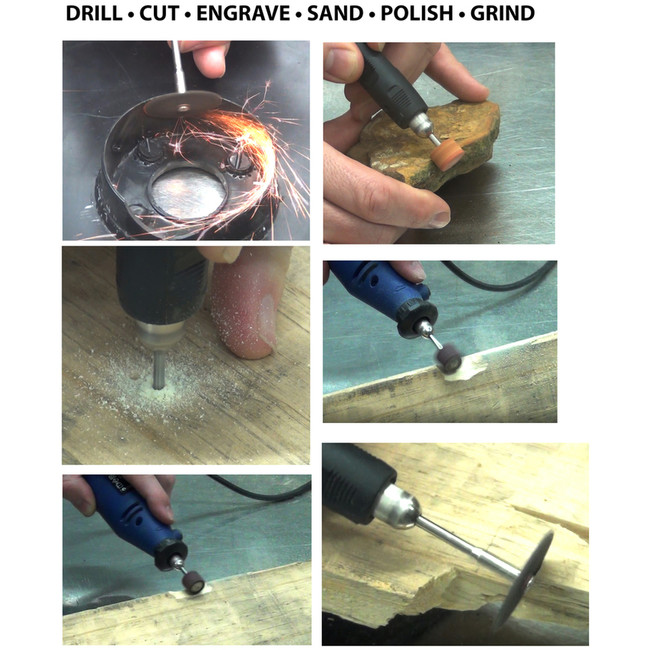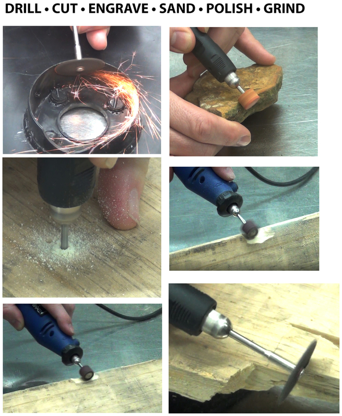 • Grinding, sanding, engraving, polishing, cutting, drilling, cleaning, restoring