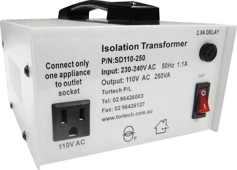 This transformer converts 240 volts into 110 volts to allow your US / overseas appliances to run inAustralia. Just plug transformer into Aussie power socket & the device into the power outlet of the transformer!