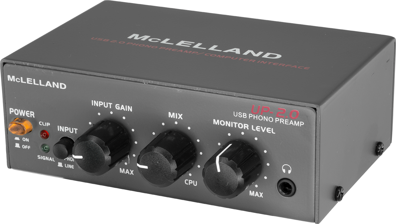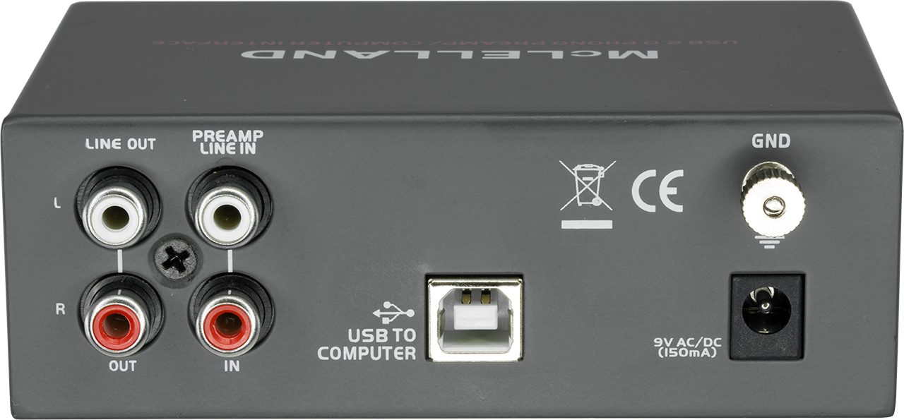 • Analog output connections: RCA (preamp line output), 1/8" mini jack (USB monitor/headphone output)