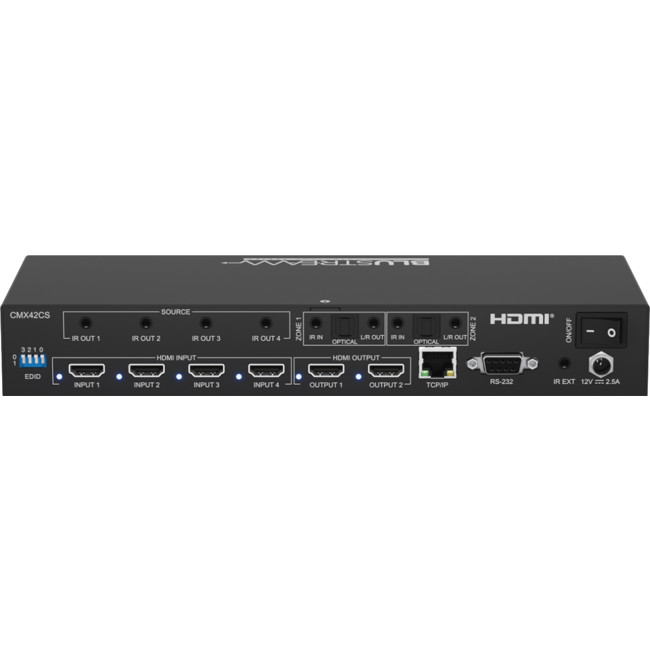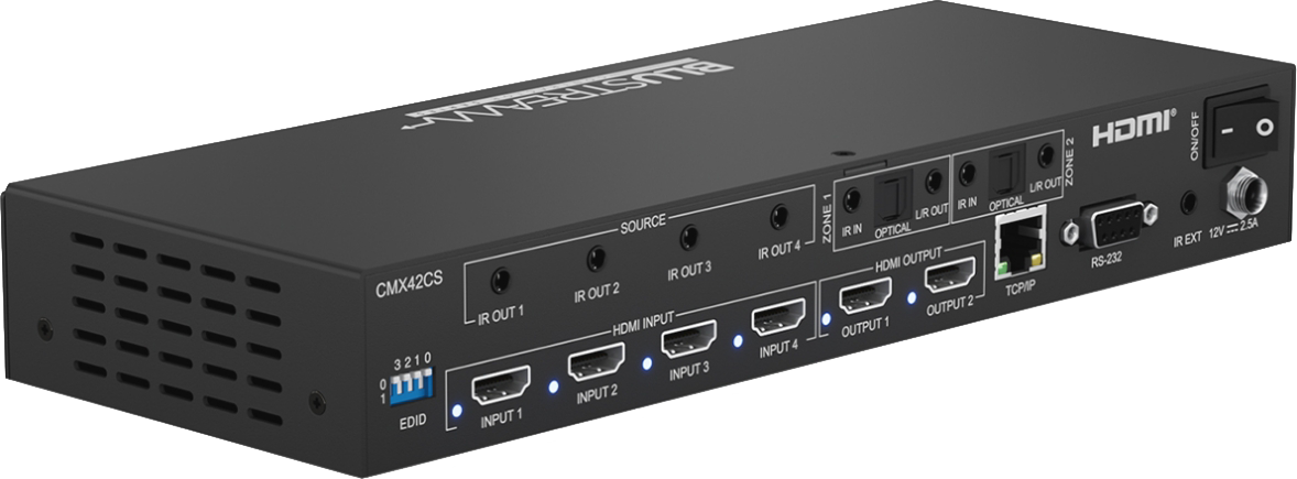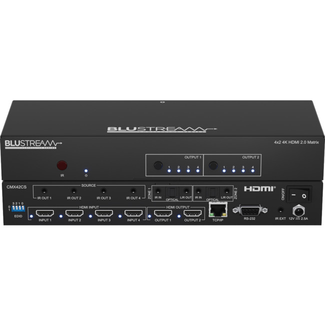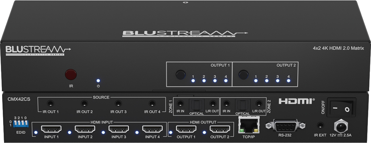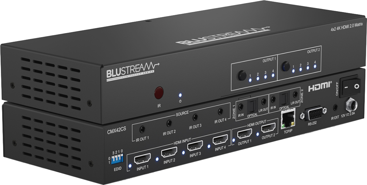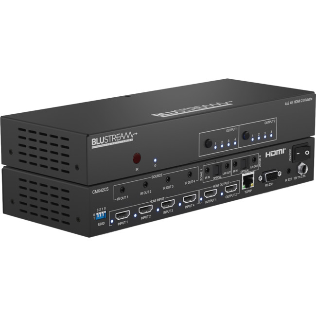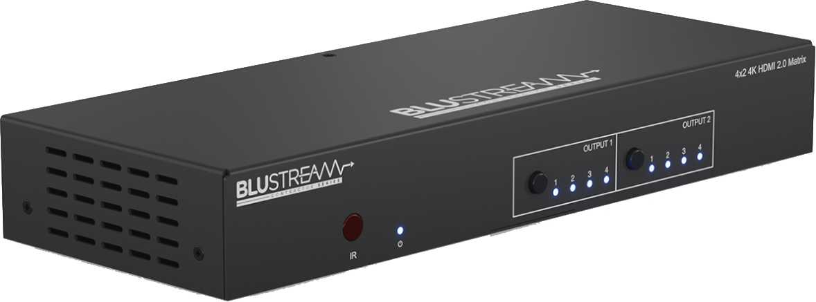 The Blustream CMX42CS is a compact yet powerful 4x2 HDMI 2.0 matrix switch engineered for high-performance AV signal routing in demanding custom installation environments. Delivering premium 4K video support and advanced integration capabilities, it represents unmatched value and flexibility for professional AV installers.