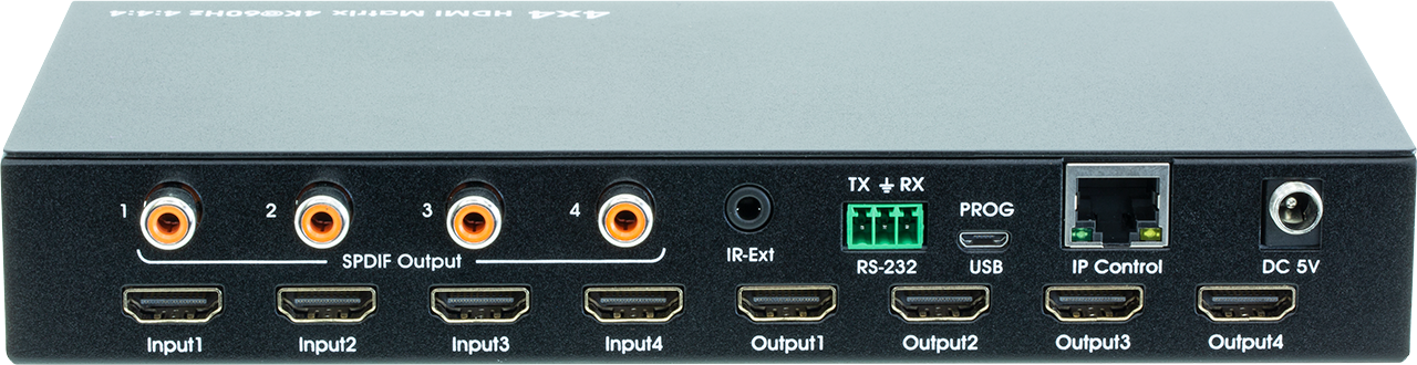 • HDMIMX44V18G HDMI 4X4 18G MATRIX HDCP2.2 SPDIF RS232
