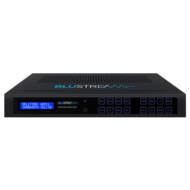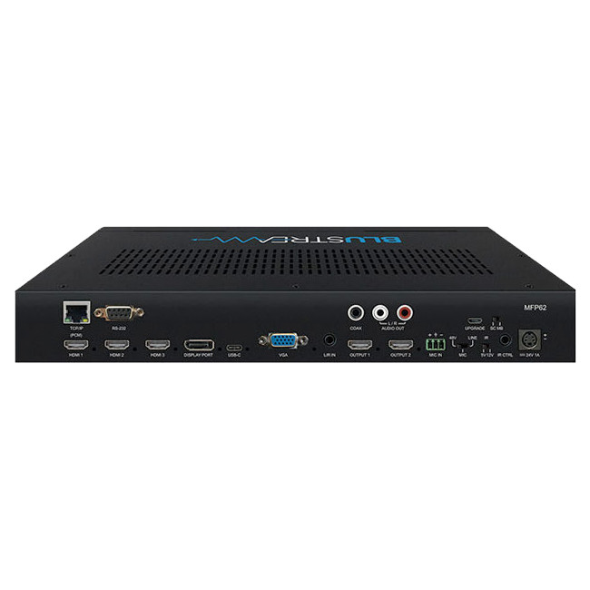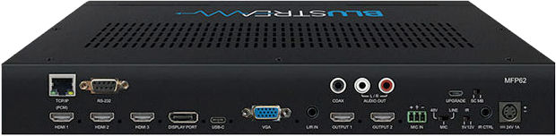 Our MFP62 is an advanced 4K multi-format presentation switch featuring 3 x HDMI, 1 x USB-C, 1 x DisplayPort™and 1 x VGA input to dual HDMI outputs.