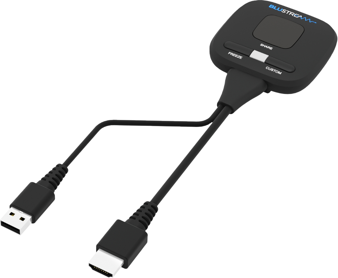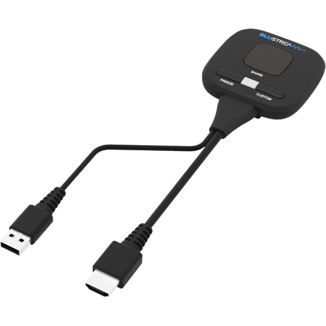 The WMF-HDMI-D is a HDMI dongle for use in conjunction with the Blustream WMF51 and WMF72 wireless multi-format BYOD solutions. The dongle provides wireless AV and data connectivity to the WMF hubs from a HDMI device. The WMF-HDMI-D supports video resolutions up to 4K 30Hz and features touch-back connectivity from the WMF hub when connected to a USB/KVM device (I.E touch panel monitor) directly connected to a WMF hub. The unit features driverless connectivity, and features Share/Connect & Content Freeze buttons, and a Custom function button for recall of a programmable function of the WMF hub it is paired with.