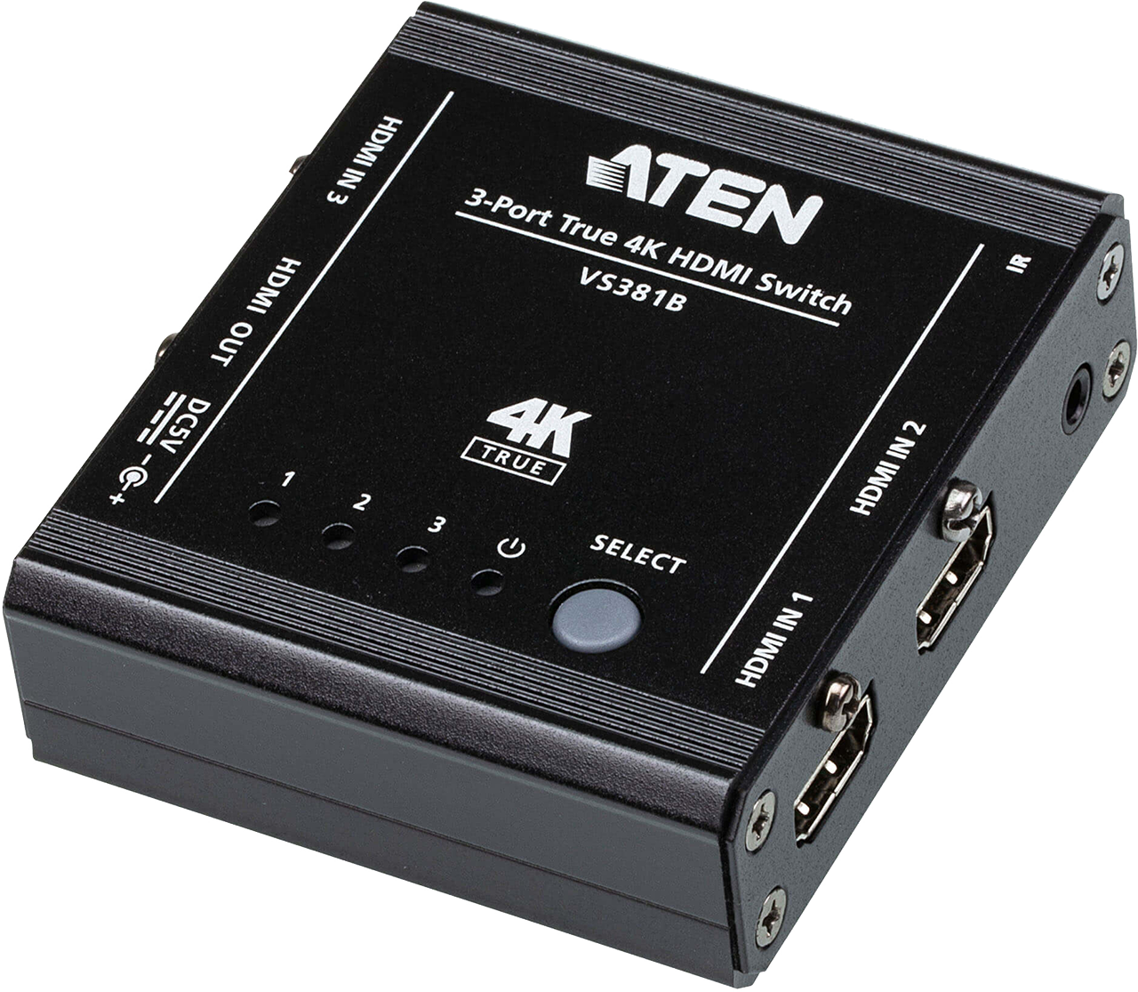 The VS381B 3-PortTrue 4KHDMI Switch with Auto Switching provides users to switch 3 HDMI input sources to an HDMI display. It supports video resolutions up toTrue 4K(4096 x 2160 @ 60Hz 4:4:4), data rates up to 18 Gbps,HDR, 3D, Deep Color, and HD lossless audio formats. Furthermore, the VS381B offers switching methods between HDMI sources by front panel pushbuttons and IR remote control, enabling users to effortlessly select desired input.