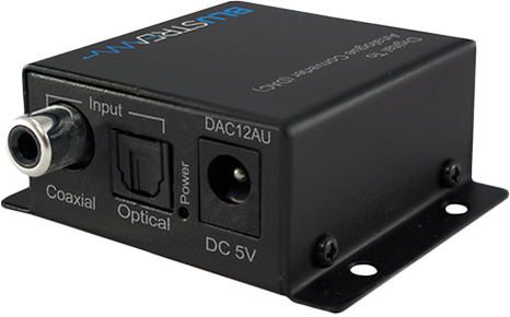 The DAC12AU also includes a digital converter which converts Optical audio in to a Coaxial digital output.