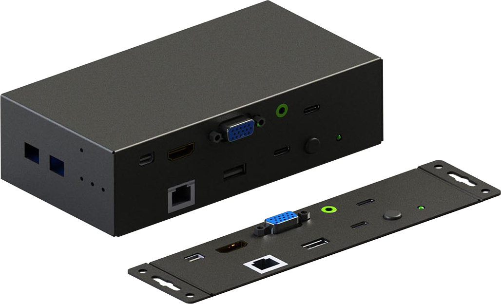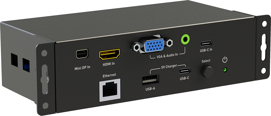 Krysma 4-port Multi A/V to HDMI Presentation Switch features a concealed, in-table design that lets you connect VGA, Mini DisplayPort, HDMI or USB Type C video source device to an HDMI TV or projector. It can also be used as a desktop unit.