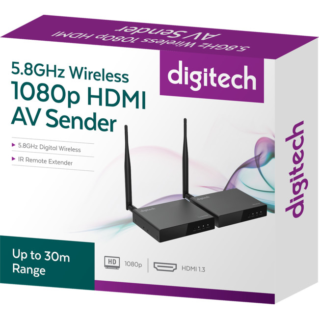 This HDMI AV sender includes a transmitter and receiver unit to transmit crystal clear 1080p signals up to 30m wirelessly. Amazing bandwidth of up to 6.75Gbps, but will cater for lower resolutions equally well and features 5.8GHz wireless frequency for less interference. For added convenience, an infrared extender is fully integrated, so you can use your remote control on the receiver end for full control of your devices as well! Full HD means it’s ideal for digital Pay TV, home theatre systems, meeting rooms, and much more. It’s also convenient to connect a computer to a display where they may not be in close proximity.