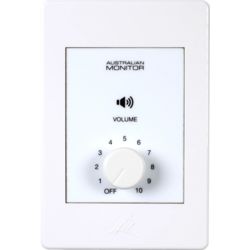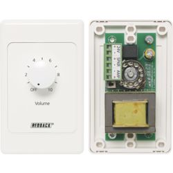 Controls 100V line speaker systems, fitted to industry standard wall plate. 11 position fine level adjustment Override relay for emergency paging Easy installation to electrical wall box Circuitry housed on single PCB with screw terminal connection