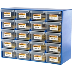 Fuse Type: M205 Voltage: 250V Value: 100mA ~ 15A (18 values; 10pce of each) Physical Size: 5mm x 20mm
