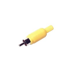 RCA plug with screw on plastic cover and cord guard. Solder type Colour: Yellow.
