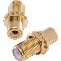 F socket to RCA socket Suits mounting on wall plates Gold plated White