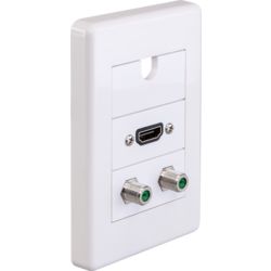 Component Video/ Stereo Audio Wall Plate with RCA jacks. RCA connectors: YPb(Cb)Pr(Cr)/ RGB connections (Green/ Blue/ Red) Mounting hardware supplied: 2x mounting bolts, 2x short screws