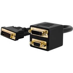 Gold-plated VGA 15 pin connector 3 Coaxial plus 9 lead High density VGA 15 pin plug to 2x VGA sockets Includes transparent dust cover